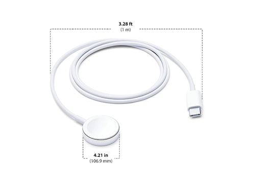 The Apple Watch Magnetic Charger To USB-C Cable (1m) is a convenient and reliable way to charge your Apple Watch using a USB-C power source. It features a magnetic connector that snaps easily into place on the back of your watch, and it's long enough to reach comfortably from your nightstand or desk.